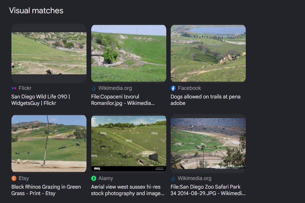 So we can see a lot of similar terrain, and we can definitely see the similar hill tops, trees, and shrubs, so we can safely confirm that this is the San Diego zoo