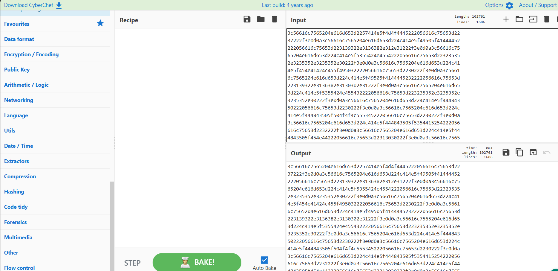 We can actually cat this information out and look, or we can also use a technique that takes this file and turns it into hex, and we can put it into CyberChef, so let's try that.