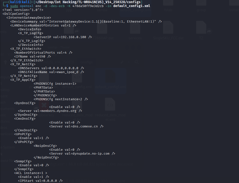 - Hardcoded keys or weak encryption in firmware mean attacker with a firmware image (or device access) can decrypt sensitive config material.