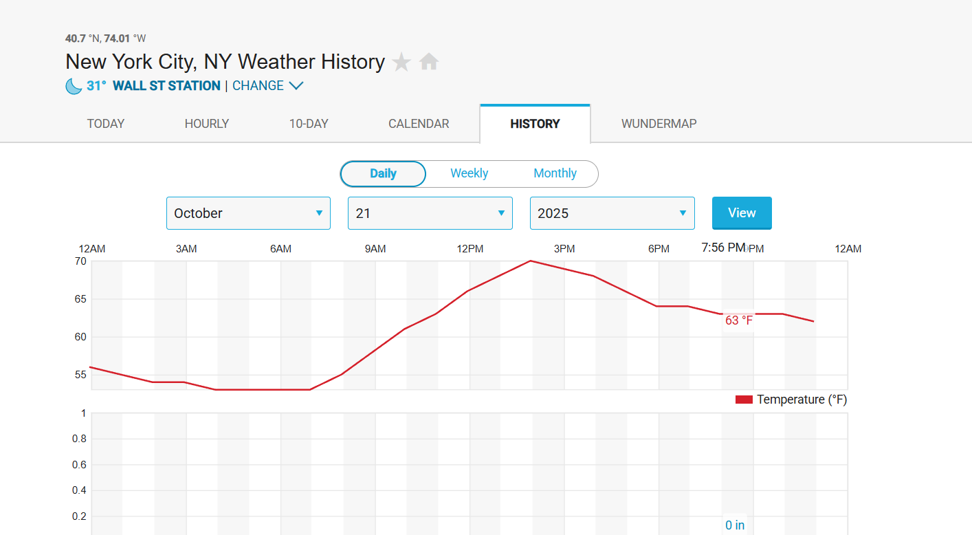 📌 The challenge-provided reference indicated 64°F, which is within normal variance for hourly weather data.