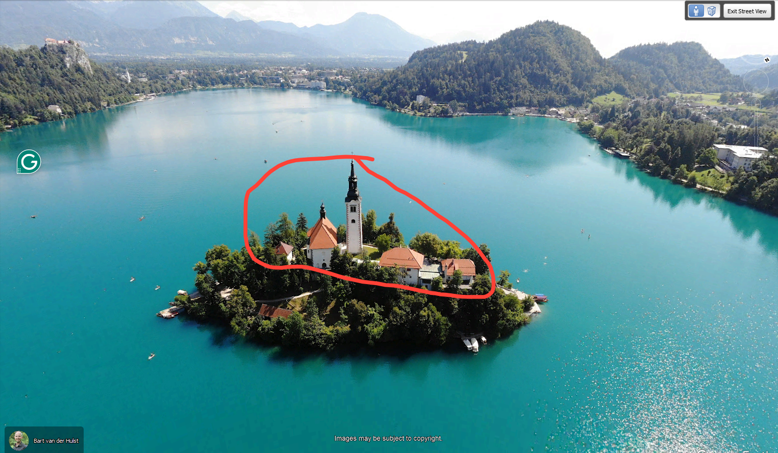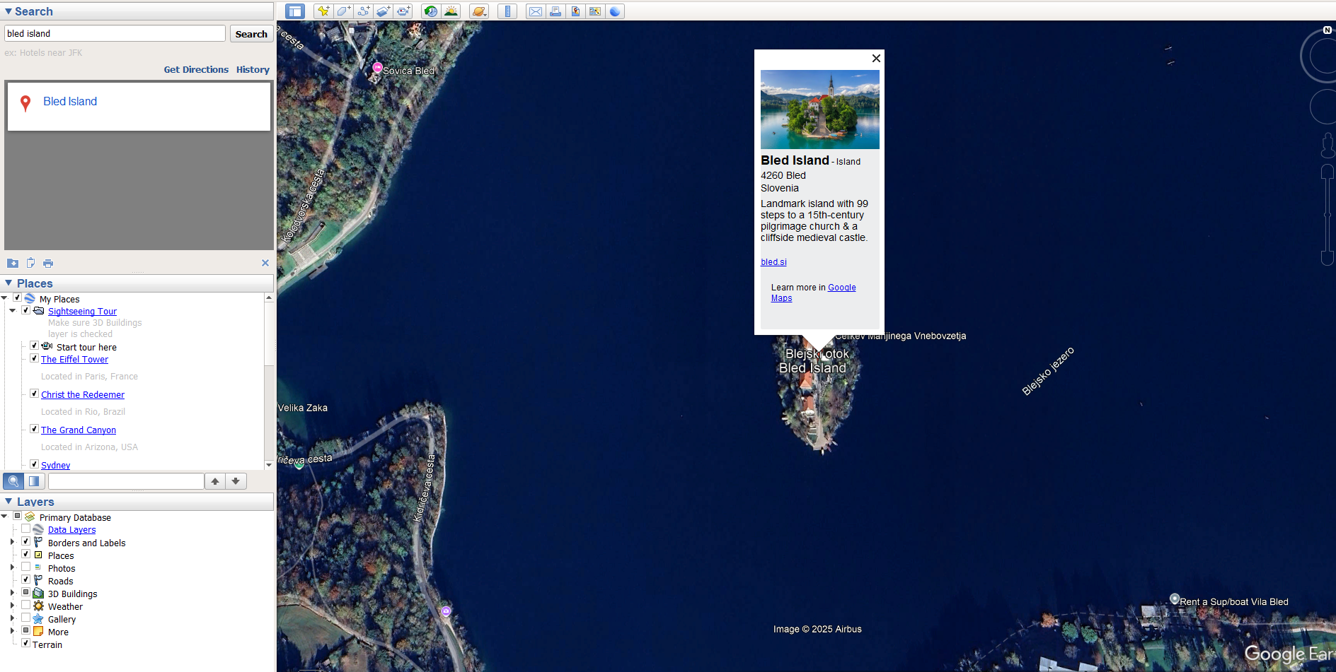 Open Google Earth and type in Lake Bled, Slovenia.